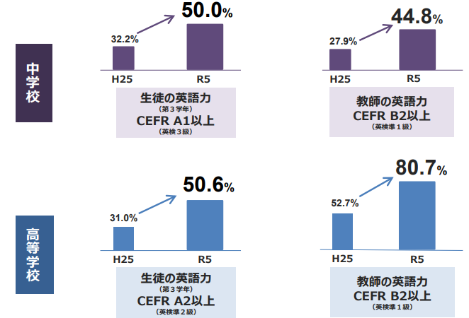 中学生や高校生は、英語力が以前から着実に伸びています。