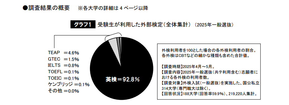 ちなみに、いくつかある外部検定の中で受験生の大半が英検を利用しているようです。